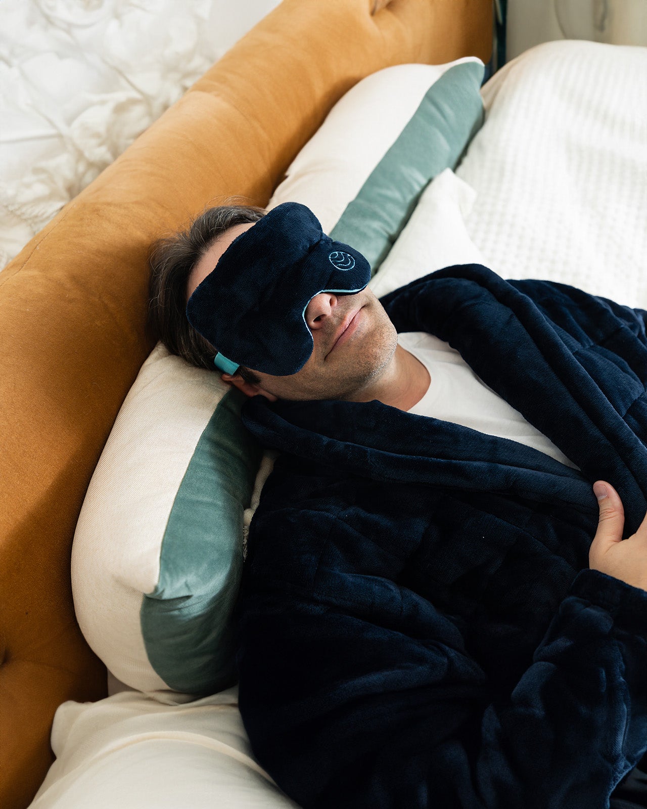Our soft, breathable Thera® weighted eye mask gently blocks light for deeper, natural sleep.
