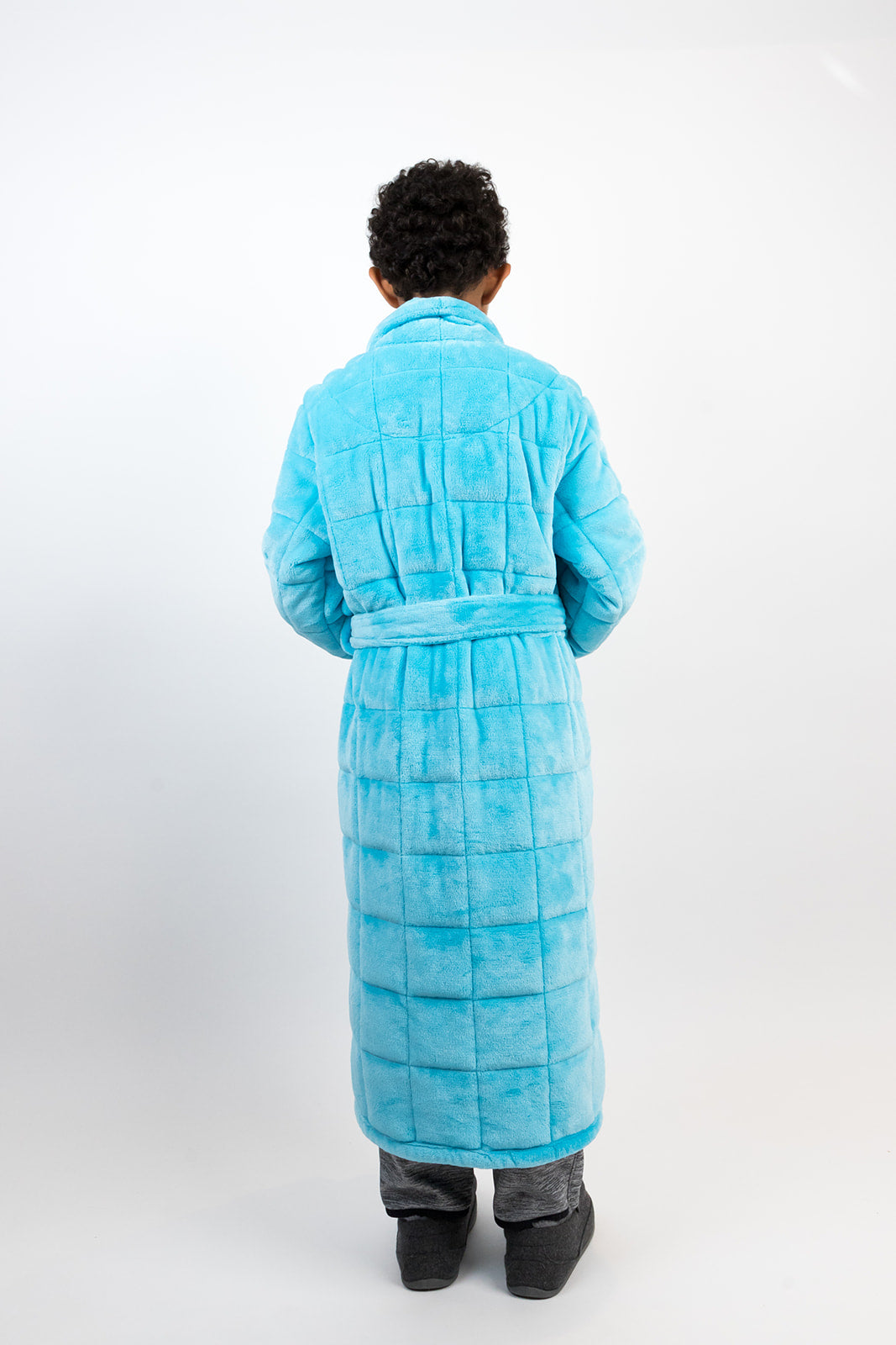Perfect for winding down after a long day or for lounging at home, the Kid's Therarobe® now allows you to Wrap Yourself in Calm anytime, anywhere.