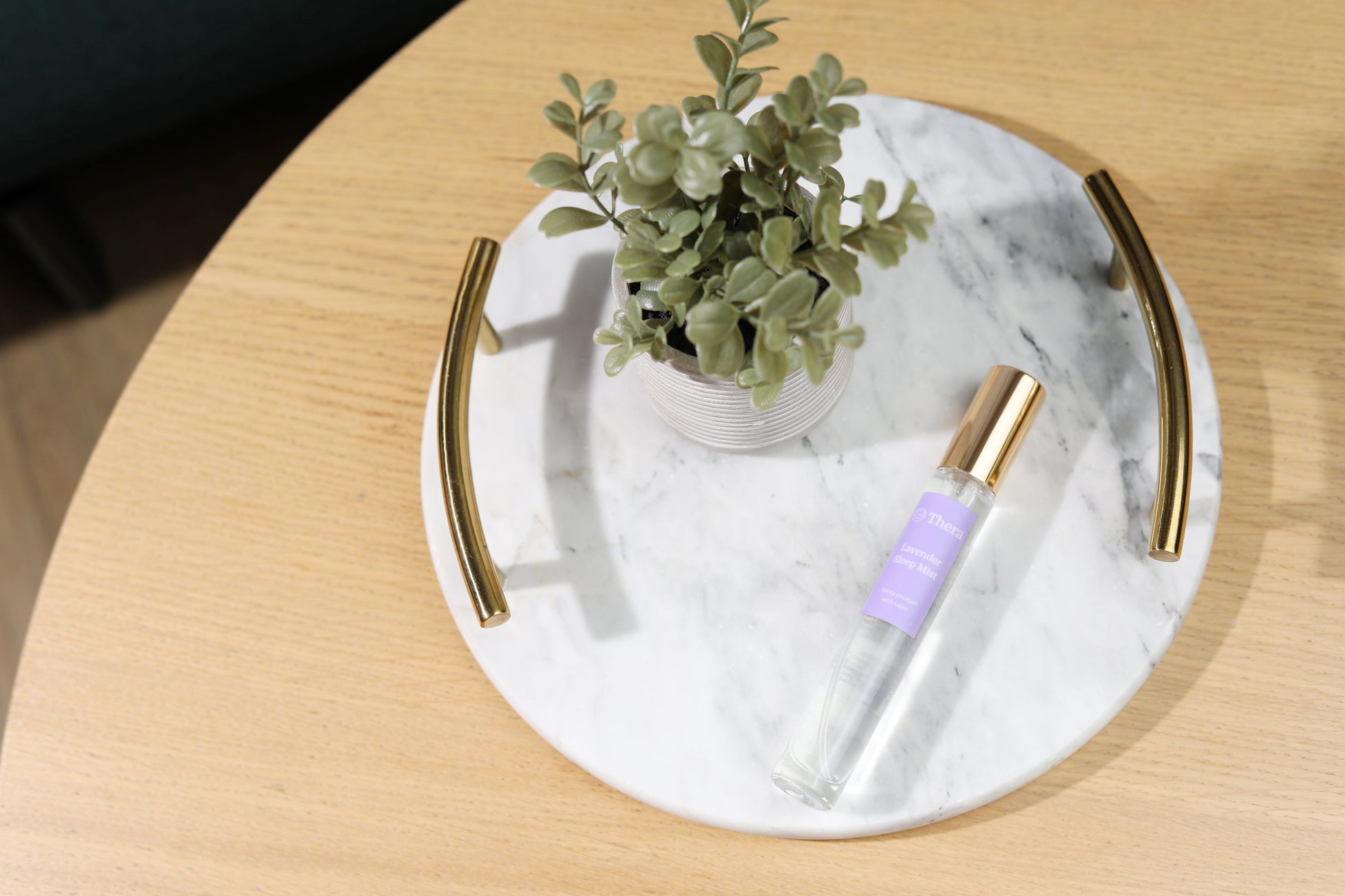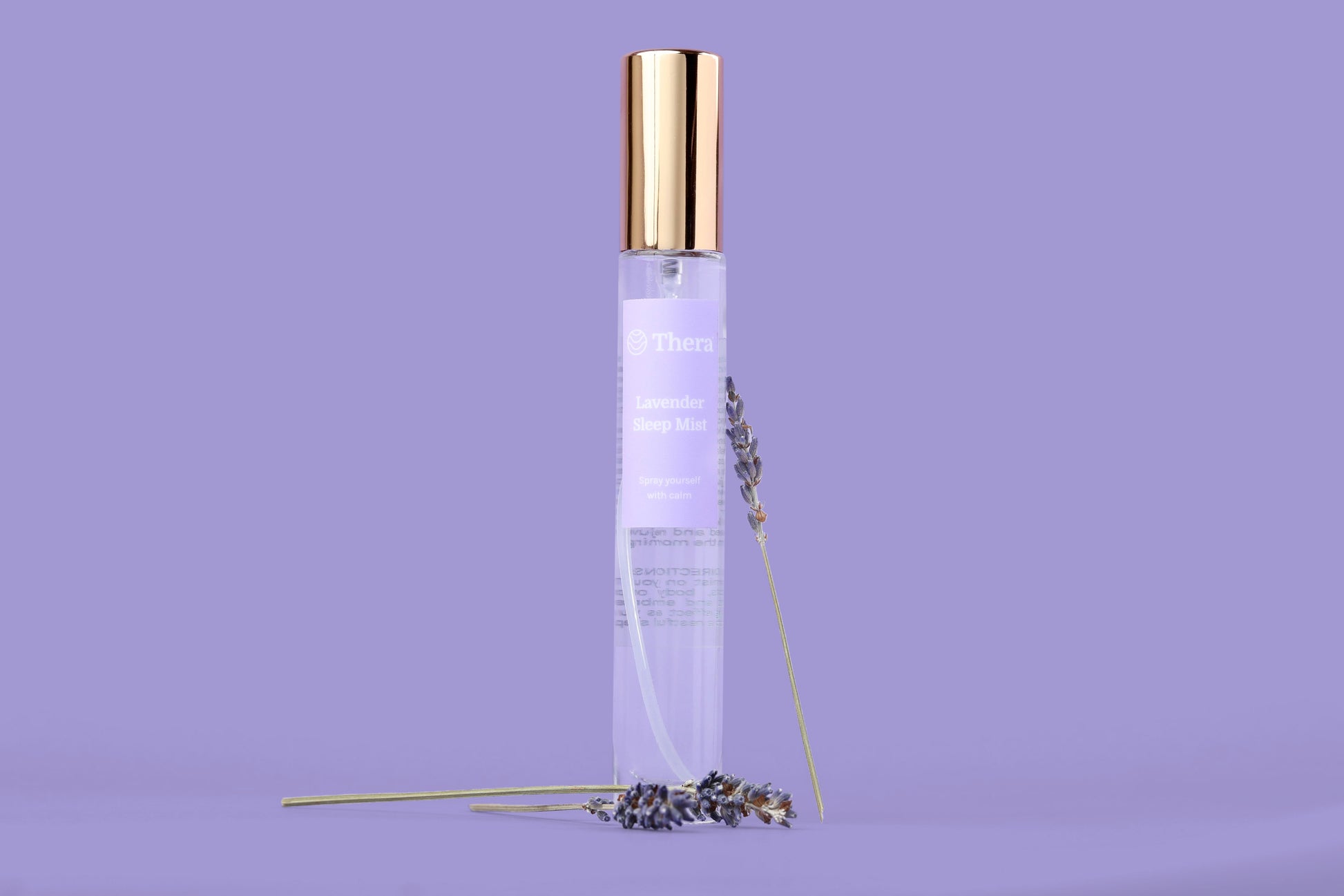 Our Lavender Sleep Mist uses natural lavender to help you relax and sleep better.